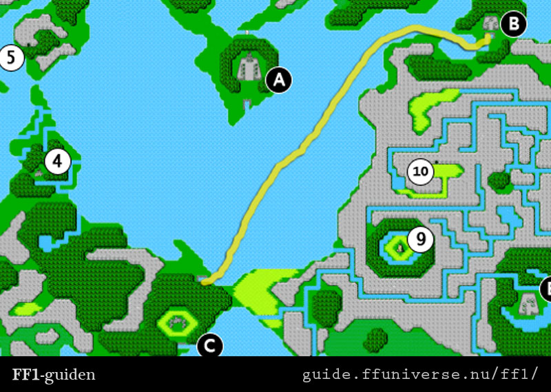 Efter att du har passerat bron så gå åt öst tills du når en liten stad, Pravoka. Gå in i staden, handla det du har råd (samla gärna lite Gil ute på kartan för att få råd med bättre utrustningar, vapen, och magier).