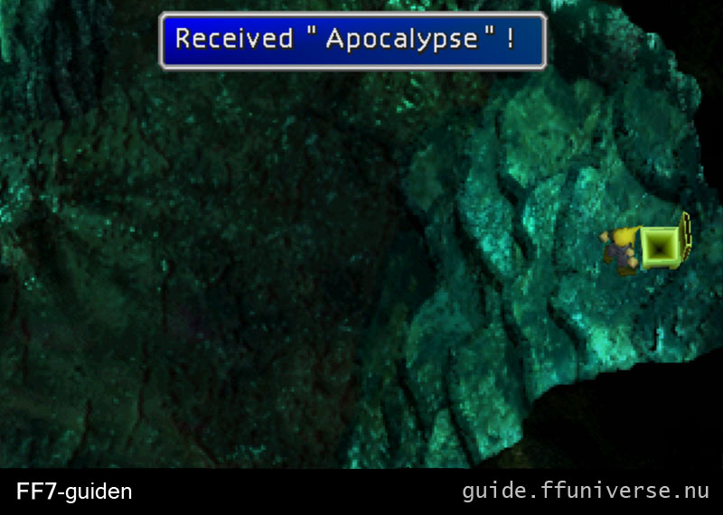 Döda Ultimate Weapon som flyger omkring vid Junon på skiva 2/3. Åk in i honom ett par gånger, i början får ni slåss och sedan åker han bara omkring på världskartan. Följ efter honom tills du får möta honom vid Cosmo Canyon och spöa honom, nu kan du också komma åt den gamla skogen på berget - Ancient Forest. Läs mer om hur man besegrar Ultimate Weapon.