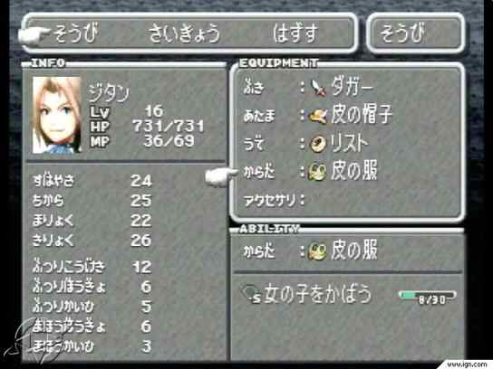 Här är det samlat bilder - skärmdumpar - tagna från spelets japanska och amerikanska version. Dessa visar alltså hur det ser ut att spela, så som hur du går runt i städer, på kartan, hur menyerna ser ut och hur striderna ser ut. Dessa bilder samlade vi in i stort sett innan spelet släpptes i europa, så väldigt många är i lite sämre kvalitet samt från den japanska versionen av spelet.